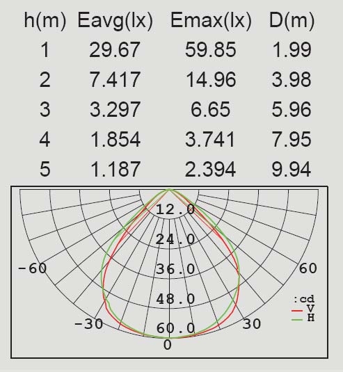 | Площадь освещения, м2 | 0,48 |