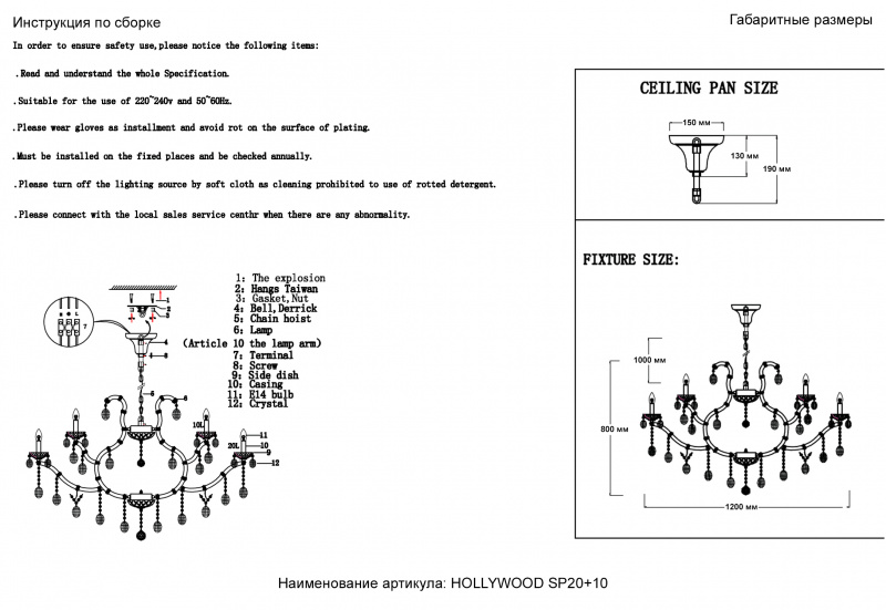 | Материал подвесок | Хрусталь |