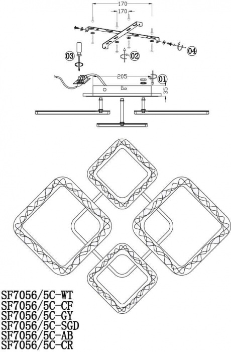 Потолочная люстра Vestejn SF7056/5C-SGD-RGB